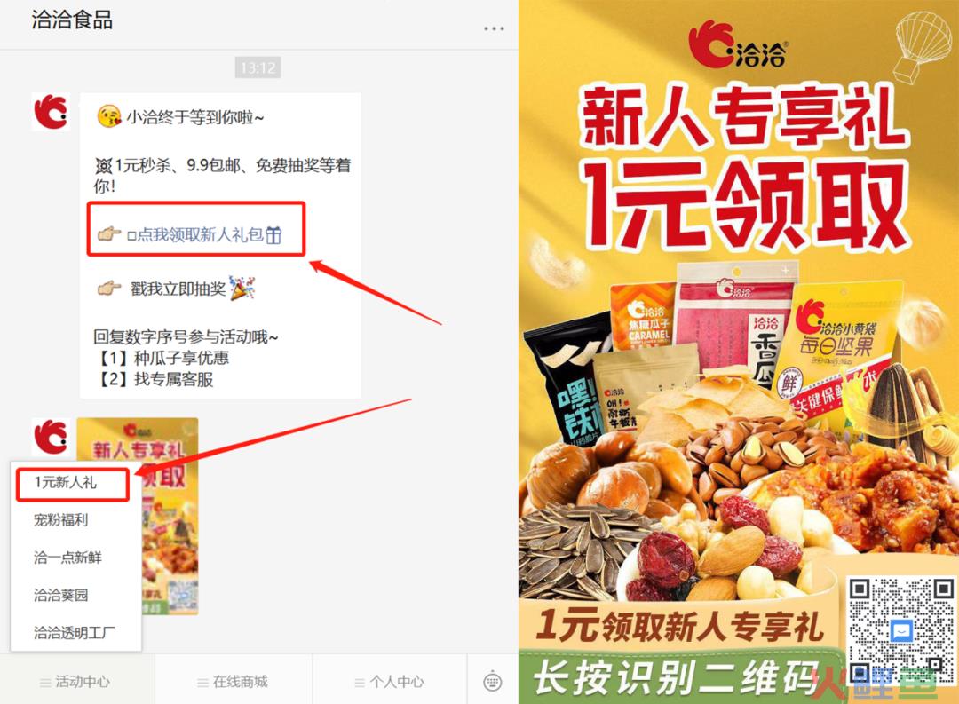 两个触达点都可以将用户引导进入洽洽食品的私域流量池中,你以为仅仅是设计了2个引流点吗?这里面暗藏玄机!其实也是为了测试两个触达点哪一个转化效果最好。与很多企业不同的是,洽洽食品哪怕在这个细小的环节中也做得足够精细化。
