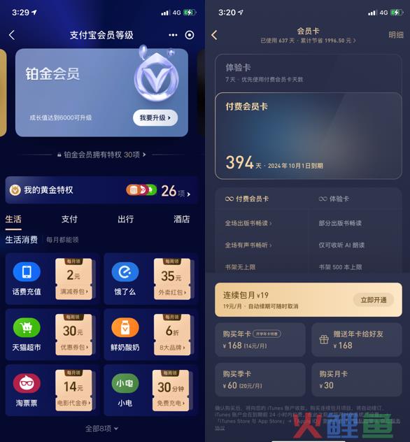 这类会员会根据业务的具体情况,设置不同的会员等级,并且不同等级的会员用户在享受的会员权益上有所区别,等级越高的用户享受的会员权益就越稀缺和珍贵,比如支付宝会员,设置了大众会员/黄金会员/铂金会员/钻石会员四个等级的会员体系;