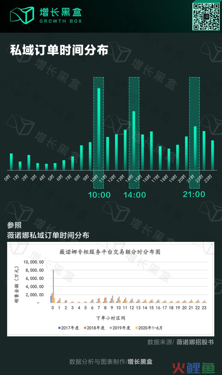 对比薇诺娜招股书中的数据,首先排除618双十一等特殊时间在0点的抢购活动,不难发现其用户下单时间也是主要集中在早9-10点,中午2-3点以及晚10点之后。