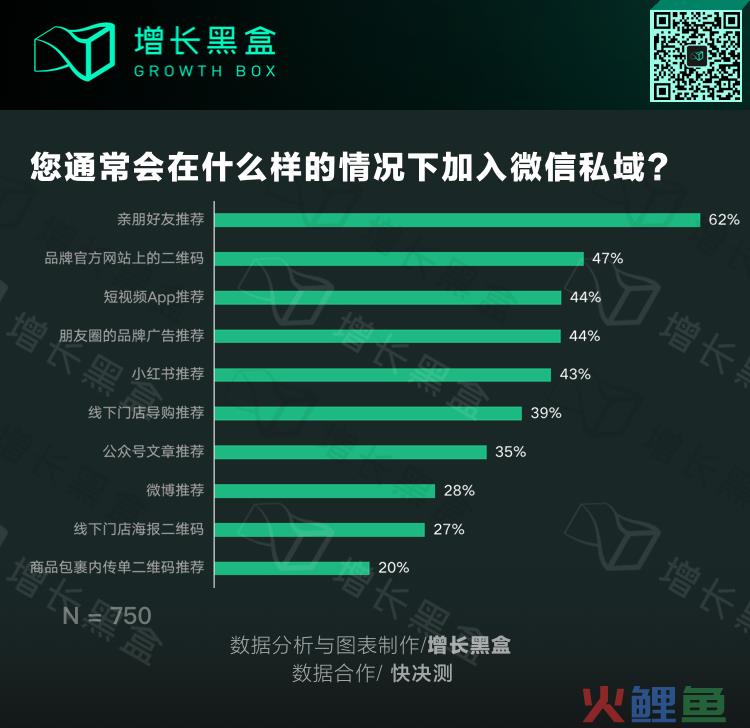 这个结果也与我们的认知一致:品牌方的裂变营销活动是最高效的私域导流方式。而常见的DM单加粉率也不过10-20%,而最近火热的朋友圈广告,添加一个企业微信的成本高达20-30元。