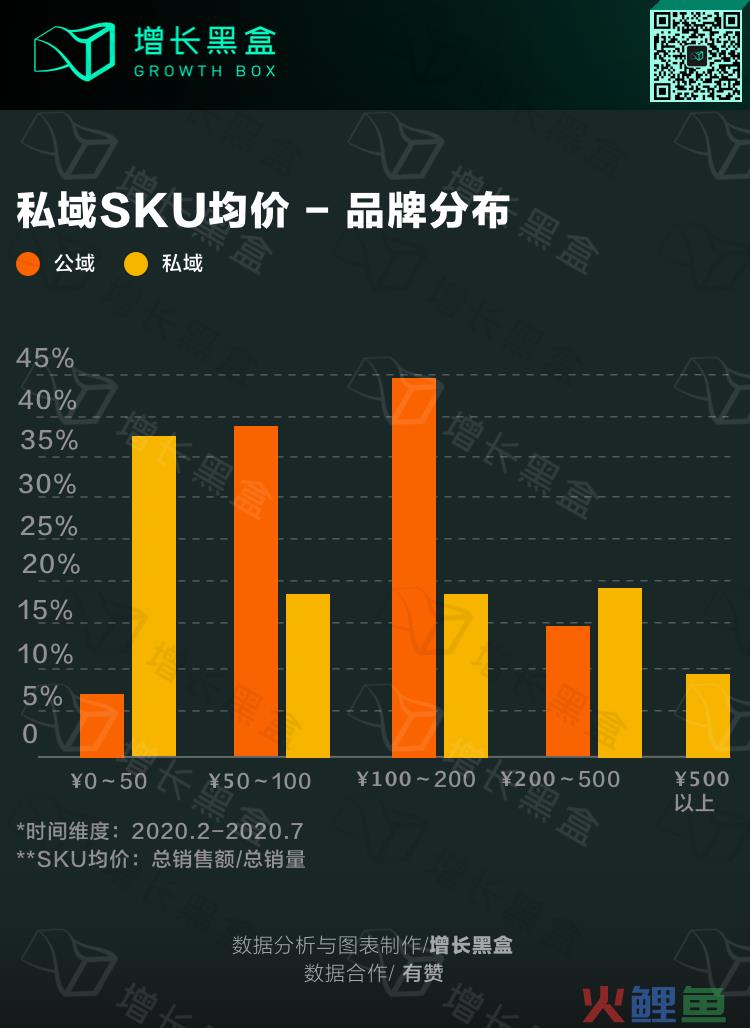 价格方面,品牌在公域和私域的SKU均价也有明显区别。