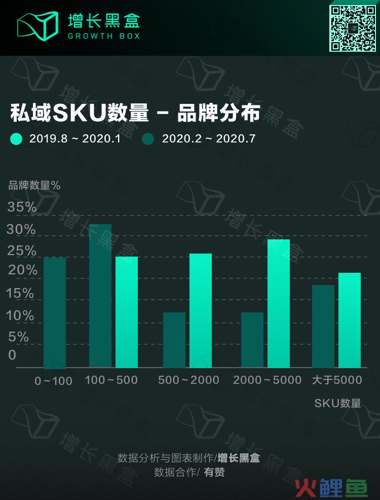 既然私域相比于公域在高速增长,那么品牌方在私域商城卖货都有哪些特点?与天猫卖货有什么差异?我们可以从产品SKU的特点来观察。