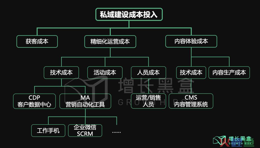 企业的自身体量越大,运营的复杂程度也会指数级增加,提升私域规模的单位成本就越高。