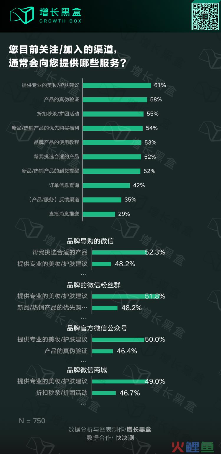 在内容方面,超过6成的私域美妆消费者会通过私域渠道获取护肤科普知识和肤质测试。