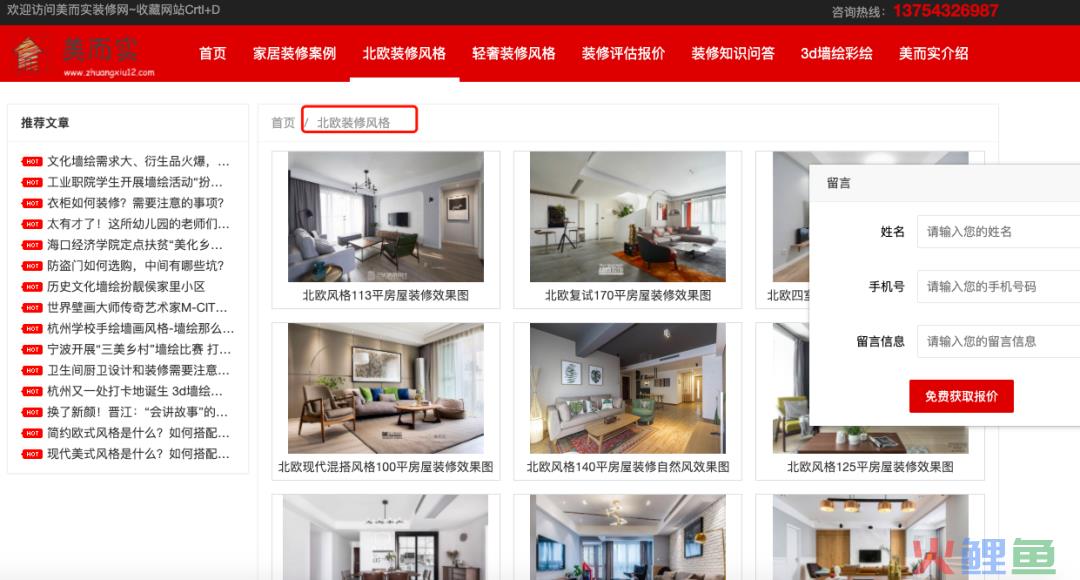 我们从上图可以看到,首先是频道关键词布局,比如家居装修案例、北欧装修风格、装修报价等。