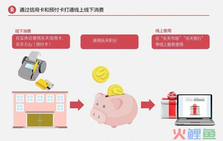 乐天信用卡和乐天电子货币Edy(相当于国内的预付卡)不仅可以在线上消费,也可以在线下实体店铺使用,而线下消费获得的积分又能在线上使用,打通了网络和现实世界的通道。