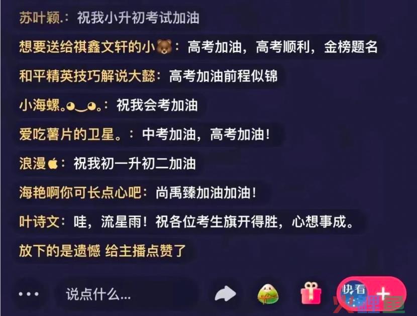 考试临近,快手又和媒体合作开启了“高考加油许愿间”策划,7家媒体的31场直播收到了近400万次许愿。高考生、中考生和他们的老师父母在直播间许下心愿,众多心愿中,还有来自奥运双冠王叶诗文的祝福。