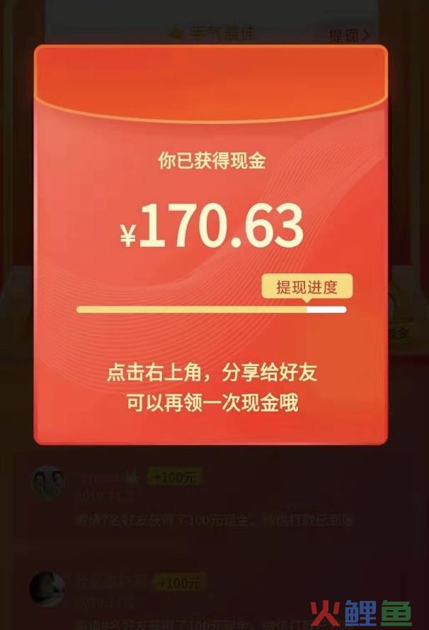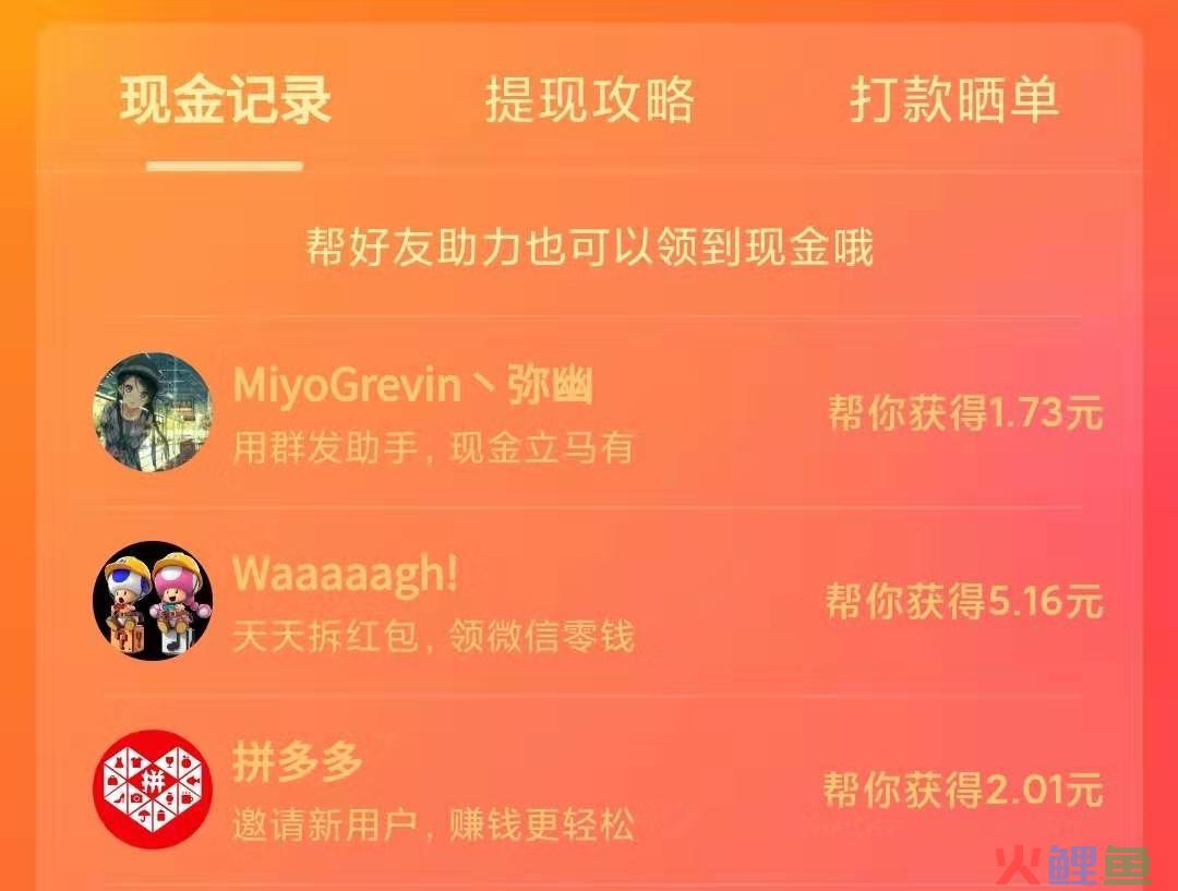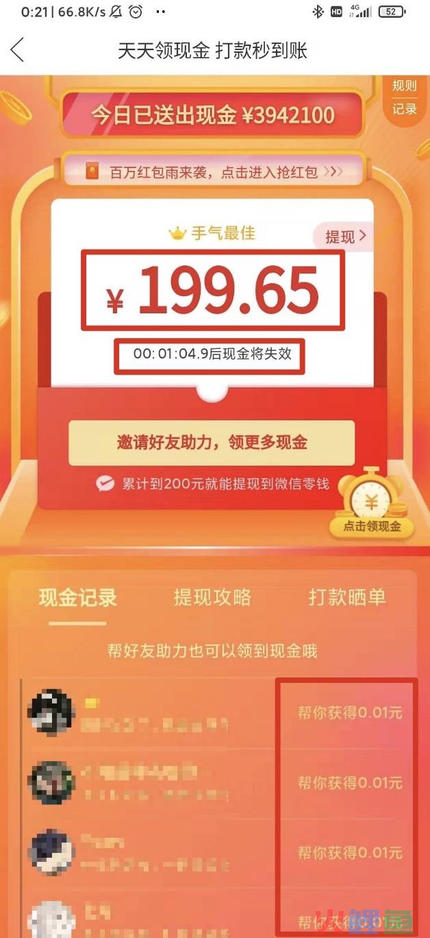 于是,尝鲜试了试,神奇的地方又来了:无论你请求助力的用户是否新老,都是你会望眼欲穿的看着提现200元的距离又近了一大步。 “滴,xxx 帮你获得了1.73元。” “滴,xxx 帮你获得了5.16元。”