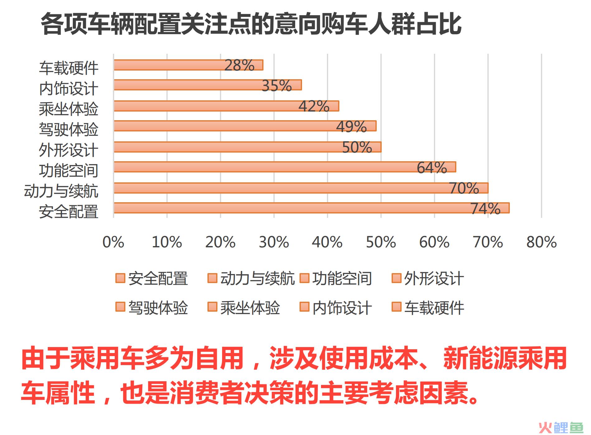 在城市中受众主要购买原因为限行约束、摇号概率、省油、政府补贴力度大,通过各项车辆配置关注点,也可以看出对于购买新能源汽车意向的人群;除了政府政策支持之外,汽车的性能属性也是消费者决策的主要考虑因素。