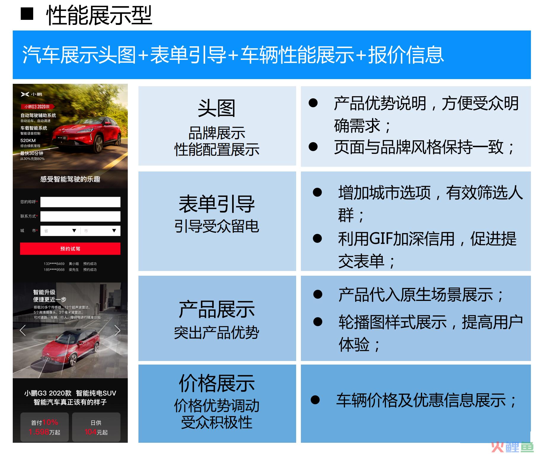 黄金公式:汽车展示头图+表单引导+车辆性能展示+报价信息