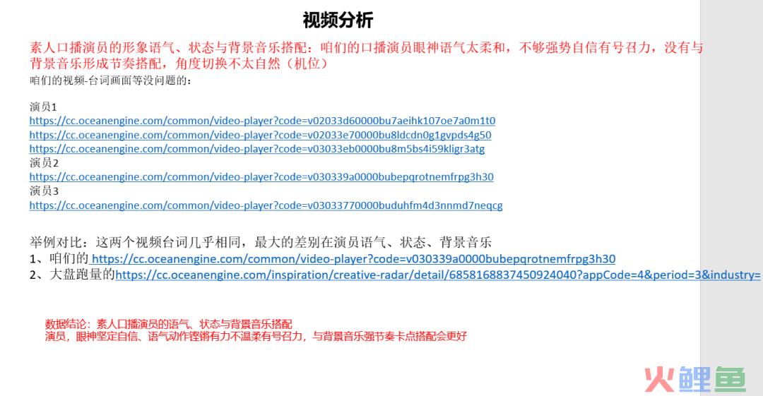 比如:台词前10秒不够吸引用户、演员号召力不足、演员妆容不搭、bgm不能起到正向作用、视频形式不够创新等。