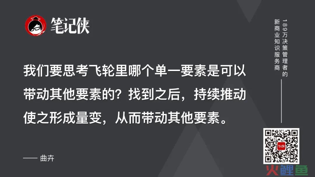 我们要思考飞轮里哪个单一要素是可以带动其他要素的?找到之后,持续推动使之形成量变,从而带动其他要素。