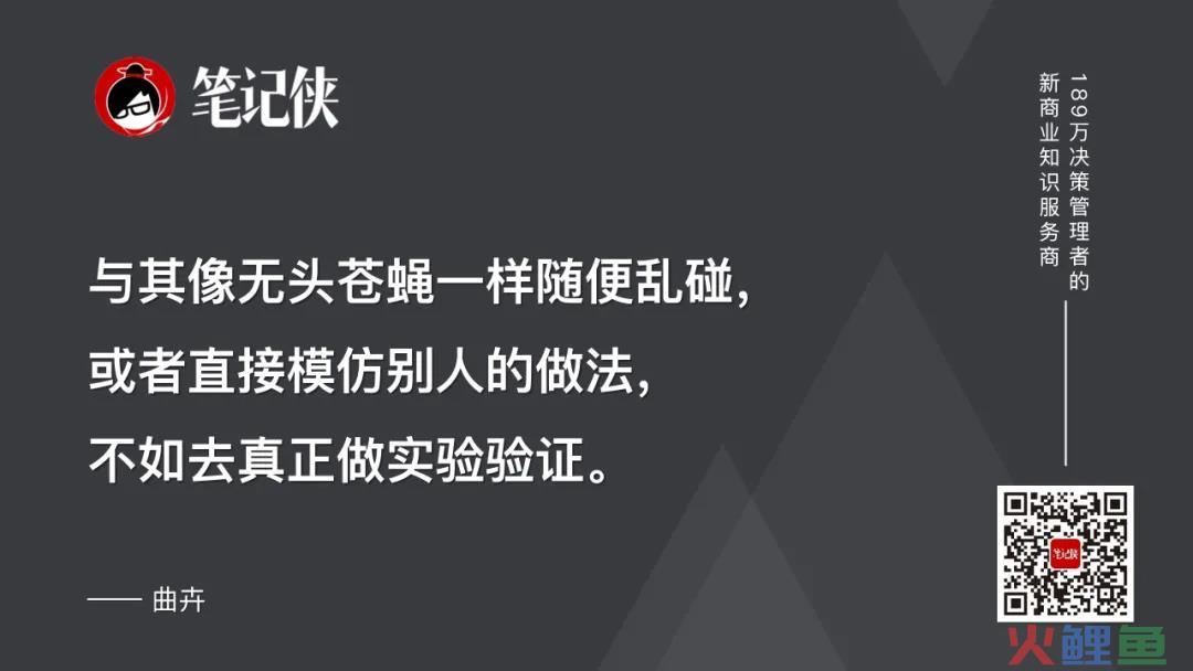 只有建立起这样的流程并严格执行下去,才可能将一个点打透,然后快速应用上一次的实验结果,来指导下一次的实验如何进行,不仅效果更好,效率也会更高。