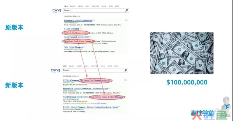 仔细一看,发现因为这个小的改动,居然让用户点击率大大提升!这个小的实验竟然给微软带来了每年1亿美金的收入!