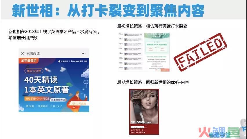 18年时,新世相开始发展线上英语学习产品,最开始的增长策略就是模仿时下最成功的裂变增长,但效果很不理想,不仅成本高,点击率也低得可怜。