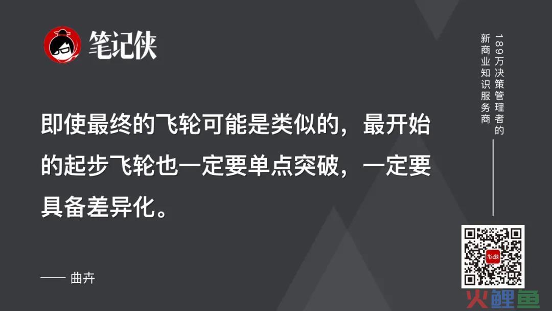 你看,即使最终的飞轮可能是类似的,最开始的起步飞轮也一定要单点突破,一定要具备差异化。