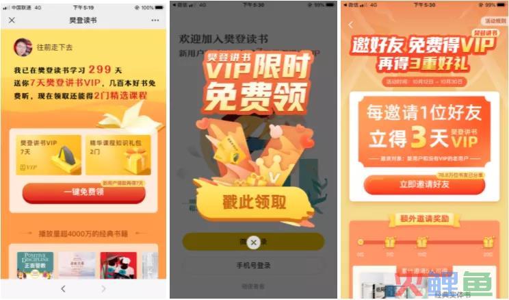 而私域裂变增长就能很好地降低获客成本。它的本质就是由老用户带来新用户,动力通常是利益驱动。看了樊登读书的用户增长方法,不难发现,它有两个优势,既节省了大量的推广费用,又起到了高效涨粉的效果。