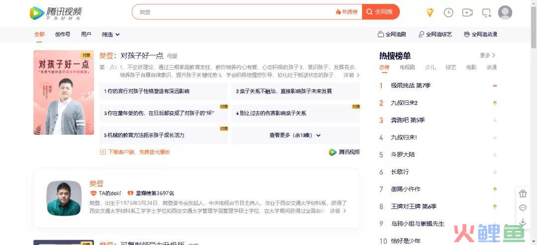樊登老师的课程在各大平台都有合作发布。包括知识平台喜马拉雅、小鹅通和知乎,长视频平台腾讯视频、爱奇艺和优酷。
