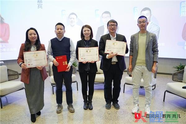 在随后的圆桌论坛中,演讲嘉宾与赛博大象集团一点资讯副总裁、总编辑范吉鹏,亲职帮创始人、福布斯中国10大母婴育儿KOL、3个孩子的北大咨询师妈妈“晴天妈妈”就“作为双重身份(父母/从业者),在双减背景下育儿更轻松还是更焦虑”“对孩子未来的期待,是更难实现还是更简单”“学科培训被取缔,兴趣班是不是更卷了”“双减=费妈?选拔方式不变的情况下,该如何教育孩子”等时下教育领域内备受瞩目的问题展开了一系列讨论。圆桌收尾环节,范吉鹏为其他4位论坛嘉宾颁发了一点圆桌派聘书。