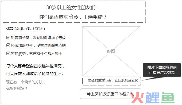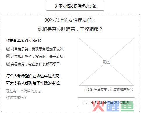 顾客通过广告页,带着想要寻求的信息进入引导页,所以先提供相关的信息,再抛出商品作为解决方案,即可提高转化率。