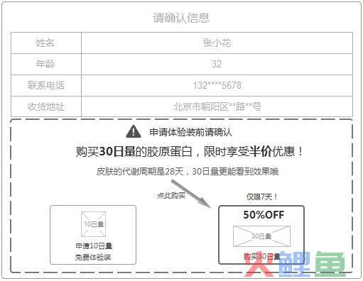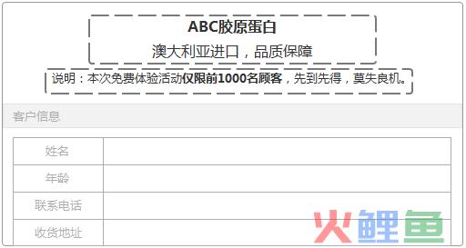 顾客在填写信息申请表处,增设一个提醒栏,标明数量的有限性,同时强调品质的保障。另外,信息填写部分放到落地页,减少跳转,转化率会提升1.5-2.5倍。