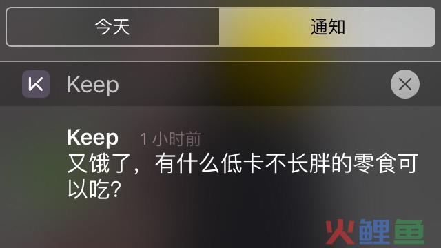 keep推送的内容是『我该运动了』、『我的运动周报』、『怎样健身最好、健身餐怎么做』等,以我为中心点,我并没有屏蔽它,是个不错的push案例。