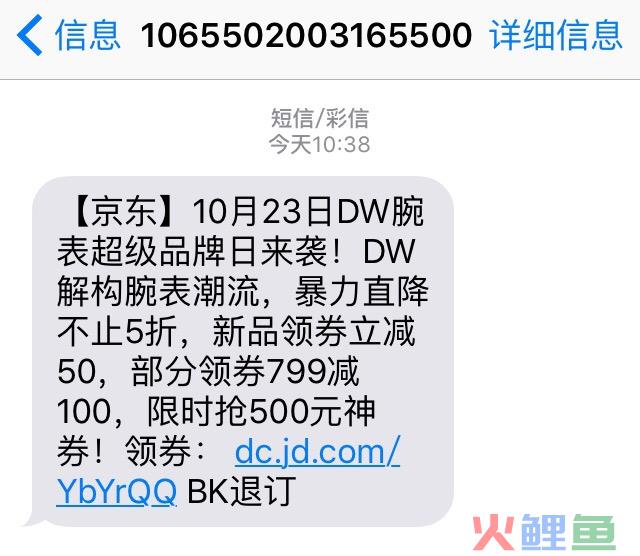 我们日常就能接收到不同的短信,各种不设限的方式吸引你去下载APP,一般来说短信召回有几个基本要求是:『平台方』、『用户利益』、『下载链接』等三个部分组合,更多的废话不用多说,用户停留在短信的时间只有1-3秒。