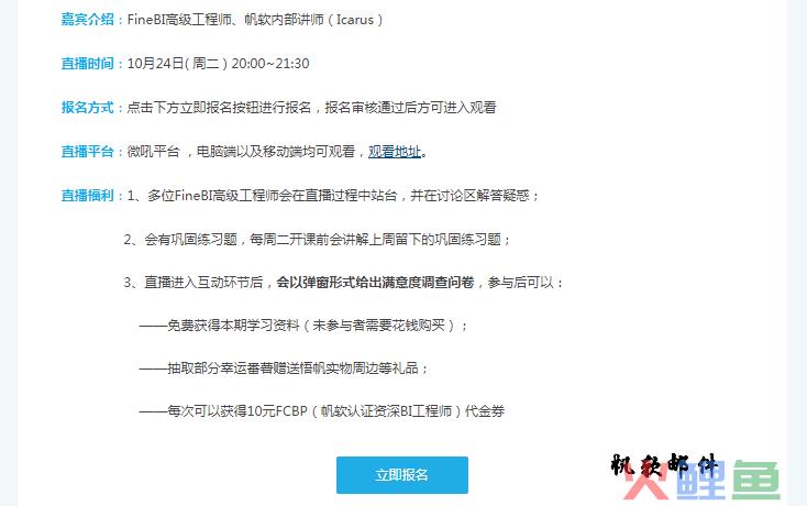 帆软的活动邀请邮件,缺点是文字过于复杂,在各种场景下都没有耐心把它看完。