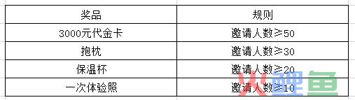 裂变奖品:3000元代金卡/抱枕/保温杯/1次体验照