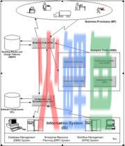 BPMI的主要发起者Intalio公司基于BPMI的系列标准提出了BPM 框架在这个框架中,BPMI系统介于企业已有的信息系统和B2B电子商务系统之间,包含流程部署和流程执行两个模块。流程部署模块可以利用目录协议与企业IT系统的目录服务进行联系,另外,还可通过UDDI协议将流程发布为Web服务。在流程执行模块中,流程可以被其他的高级语言包装成不同的形式,或者直接提供给工作流系统执行。对于跨企业流程,流程的公共部分还可以被封装为Web服务,或者遵照电子商务协议与其他企业的流程进行交互。