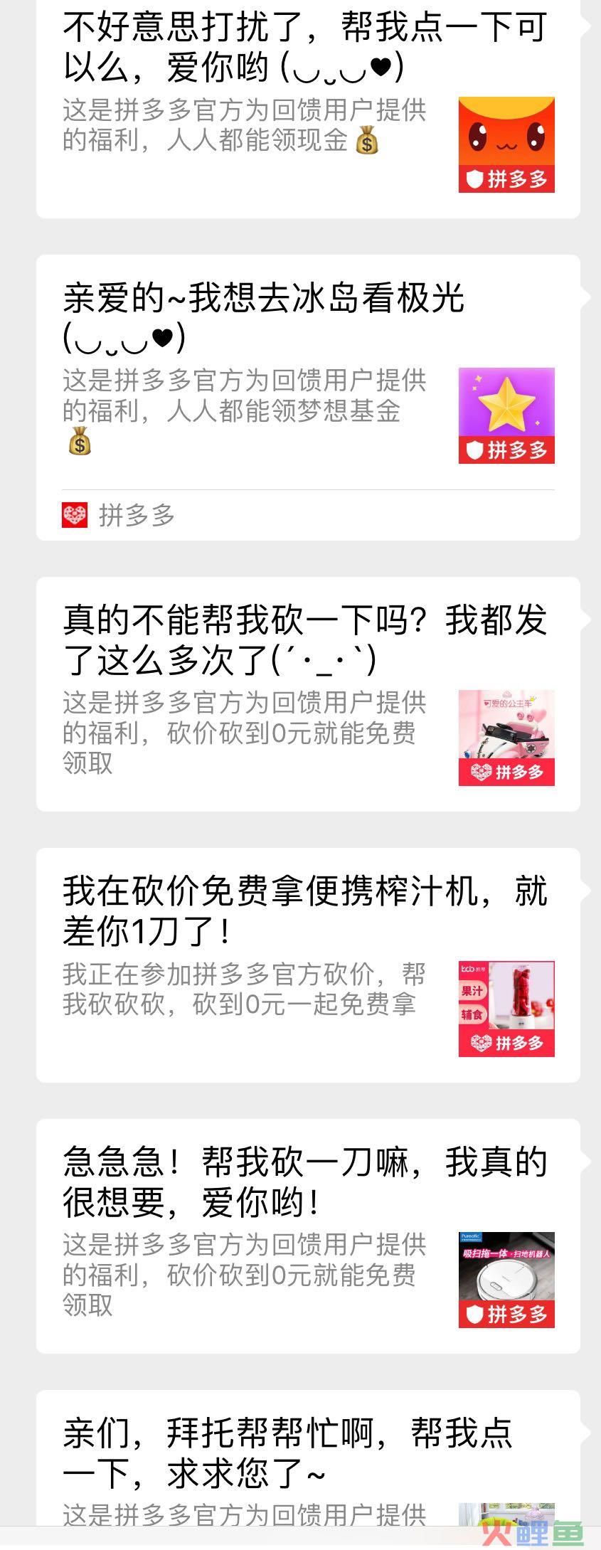 依然以拼多多的分享文案来剖析,“不好意思打扰了”“爱你哟”这类词帮求助力的用户发出了他们马上就要敲出来的话,一般被单独私聊邀请的人看到这类话,也不忍心拒绝了,这就是拟人化的效应,帮助用户表达他想表达的东西。