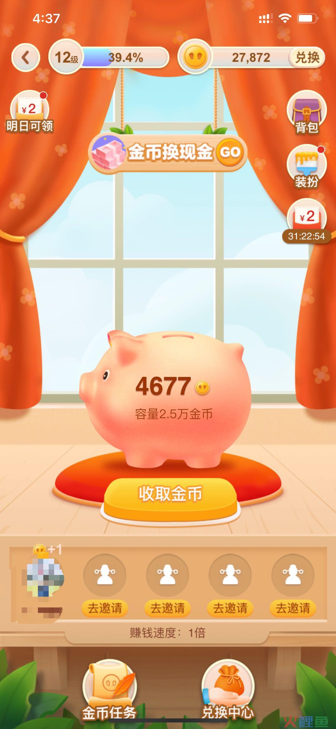 以拼多多的金猪赚大钱为例,用户无需邀请好友,每天签到做任务也能攒金币兑换权益,对于愿意分享的用户,金币的增长速度加快。