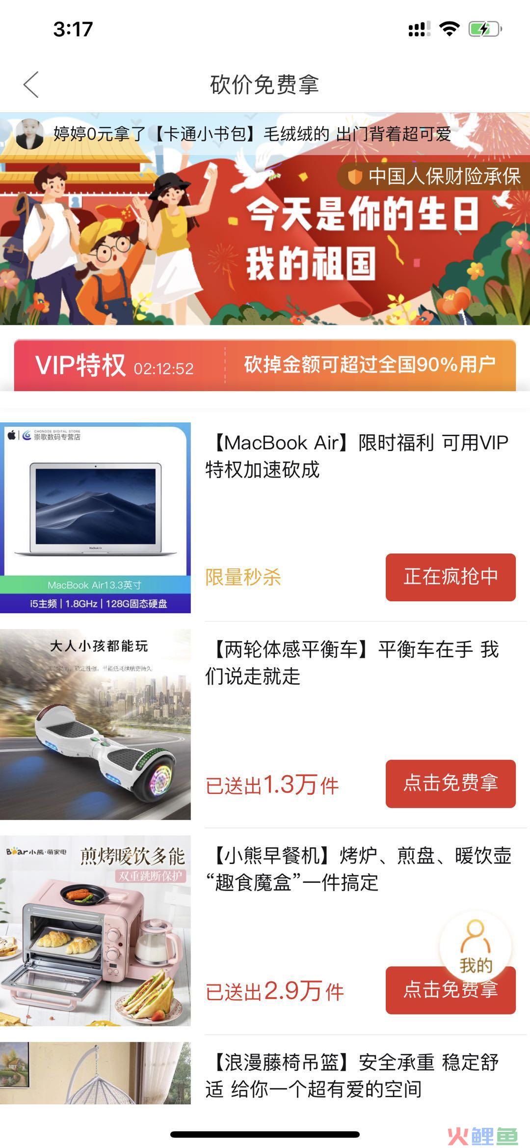 比如砍价页面进去就一个大大的vip特权,告诉你“砍掉金额超过全国90%用户,特权还只有2小时”。