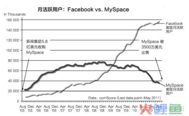 Facebook(脸书)如何突破MySpace(聚友网)重围。早在Facebook成立之前,美国社交网络第一的位置属于MySpace。MySpace历史久,用户多,还有东家加大金主新闻集团撑腰,按说它可以轻易碾压由几个大学辍学生创办的Facebook,但它最终输得一败涂地。