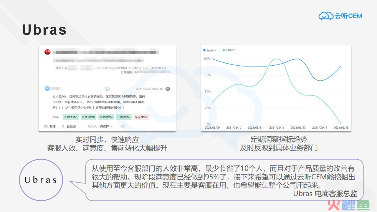 实际效果方面,从Ubras的电商客服总监的反馈我们发现,我们不仅帮助品牌方提高了工作效率,同时还能助力Ubras在新品研发、新的行业机会方面的挖掘。