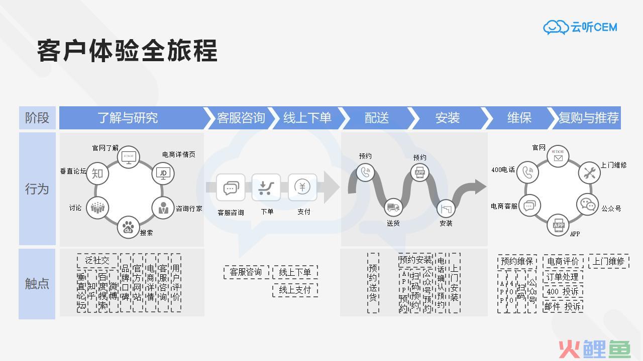 客户旅程地图(以家电行业为例)我们以用户视角来作一次客户旅程分解。