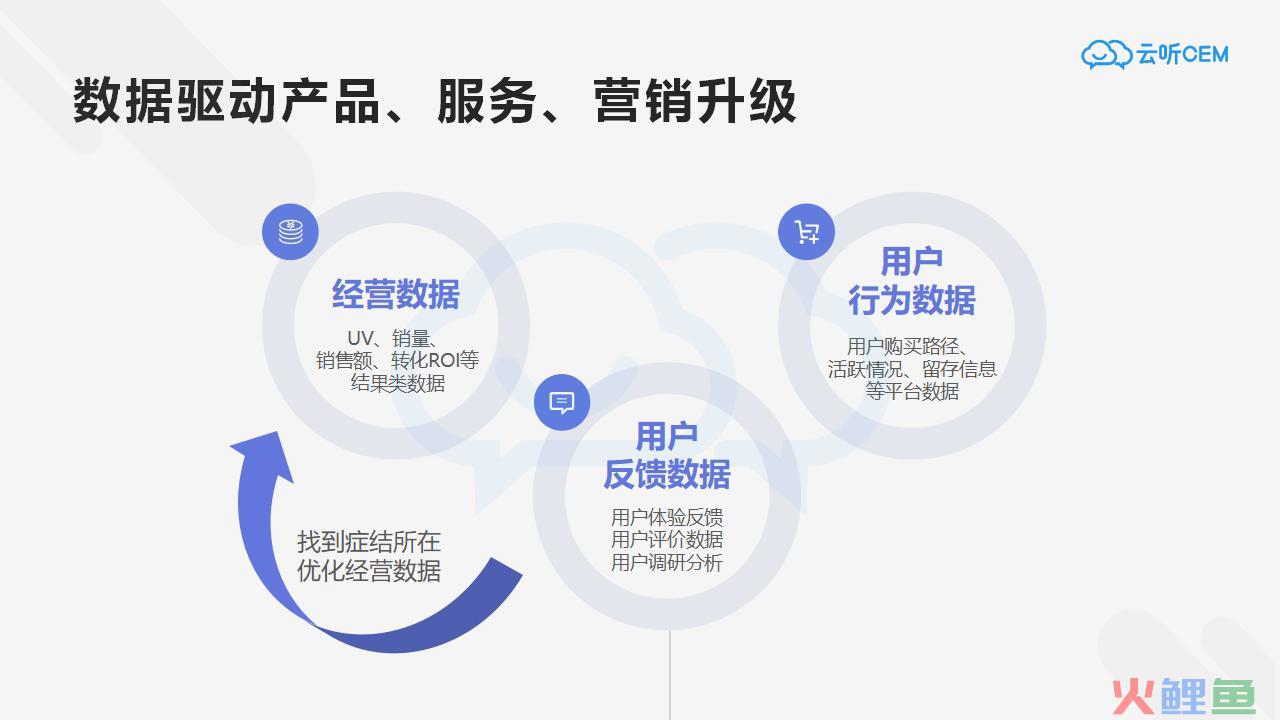数据是能够驱动产品、服务、营销升级优化的。我们把企业最为关注的数据分为三类: