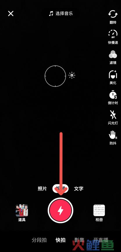 在您点击了加号之后就会出现拍摄视频的页面,这时您只需要点击拍摄的按钮。当您点击拍摄按钮之后,就可以开始录制自己想要展示的视频内容。