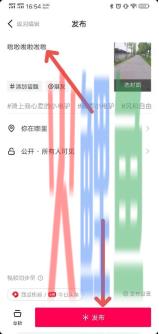 最后一步,可以在左上角写上你这个作品想要表达的意思,对拍摄作品的说明,方便受众理解作品具有的内涵,写完之后,直接点击右下角的红色发布按钮完成视频的发布。