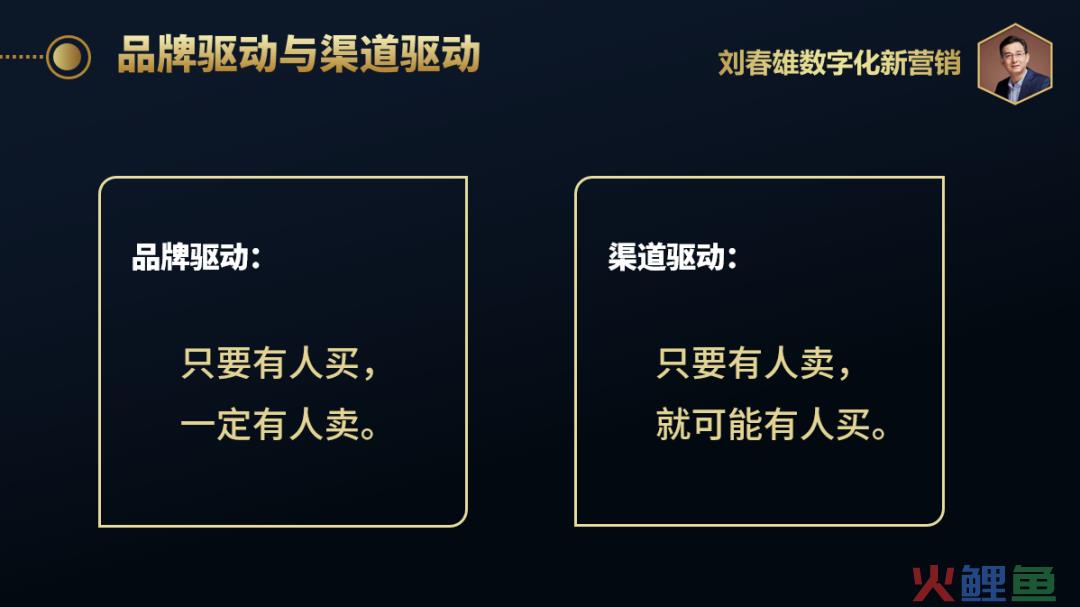 渠道数字化模式是双私域,既有零售店与用户的强关系,也有品牌商与 用户的平台关系。双重关系,多重强化,不知不觉间,渠道逻辑发生了变 化。营销一直有“品牌驱动”与“渠道驱动”之说,但两者的逻辑完全不同。品牌驱动是通过大众传媒触达用户,形成渠道拉力。品牌驱动的原理 是:只要有人买,一定有人卖。渠道驱动是通过深度分销把产品摆上货架, 做好展示,加上导购的现场推销,形成动销。渠道驱动的原理是:只要有人卖,就可能有人买。