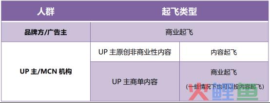 内容起飞目的是加热内容、增加曝光,适用于UP主个人非商业推广视频、MCN代理商;