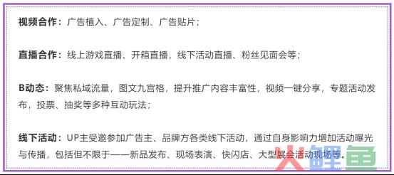 说到这里,可能有的小伙伴对UP主商单不太了解,它可以分为以下几种: