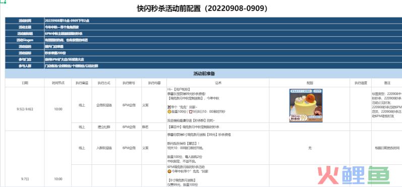 活动的整个周期虽然只有1天半,但运营人员需要将时间按照小时、分钟进行拆解,具体到详细的时间点做什么动作、用什么样的内容去触达用户,激发用户的购买欲,整个过程是否衔接流畅,是否合情合理。