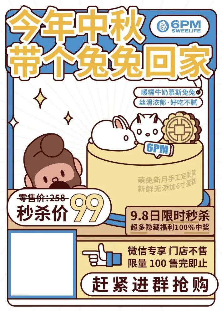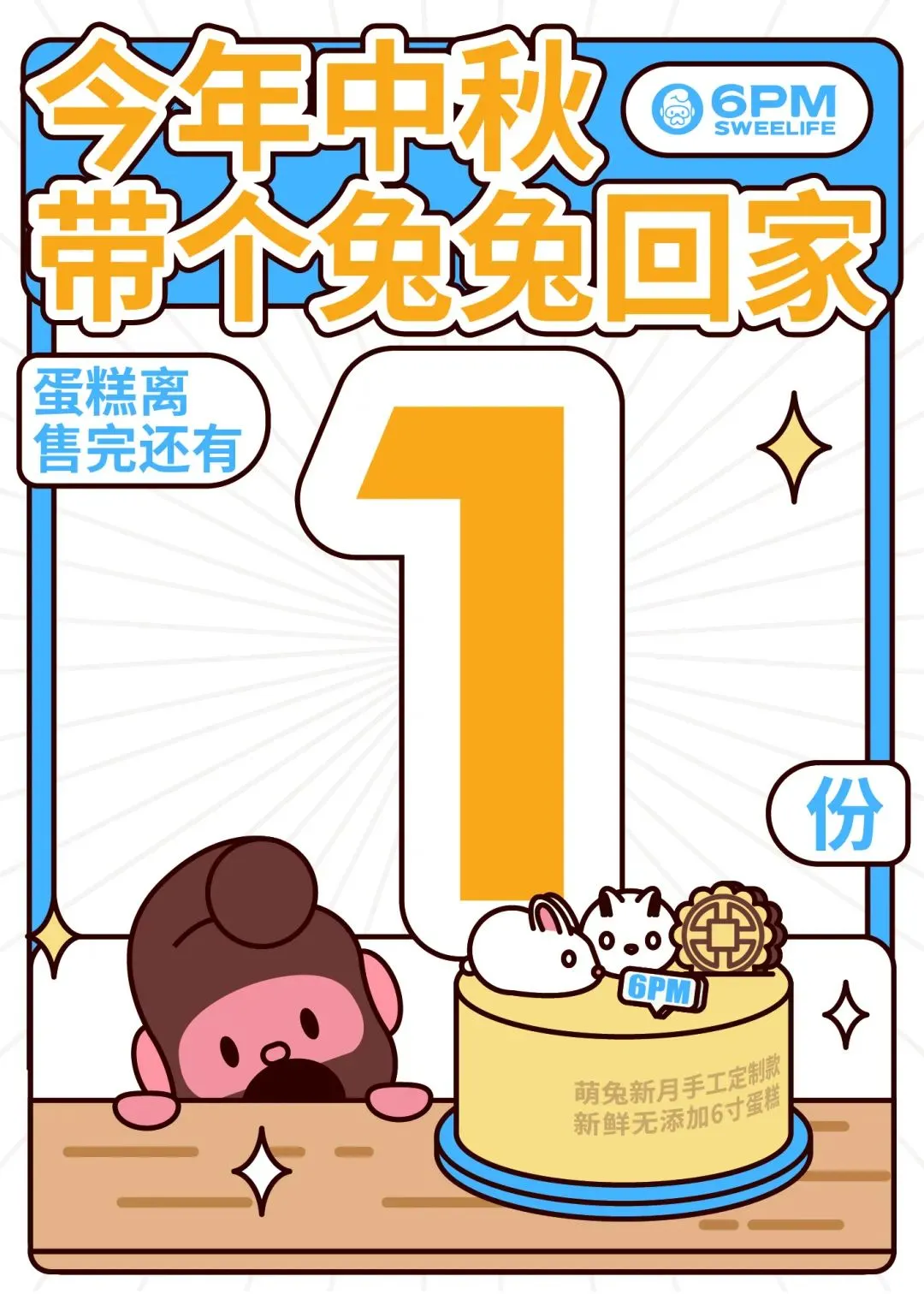 因此,这给了6PM这个很好的机会。我们只需要设计一款具备中秋元素、满足年轻人所爱的产品即可。所以最终推出了这款中秋兔兔蛋糕。