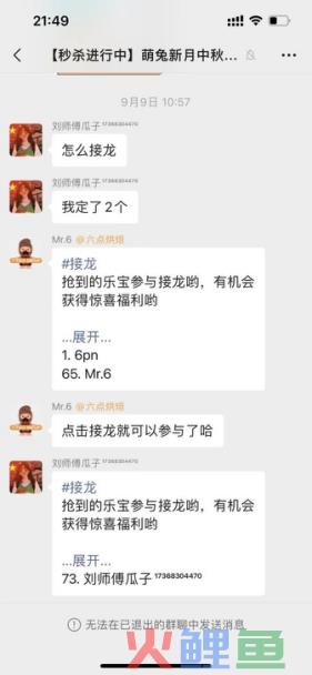介绍完产品后,就要让想下单的用户群接龙了。我们可以想一个理由,比如,因为本次是特价秒杀,所以需要在群内接龙做登记。接龙满多少人会有额外的福利。