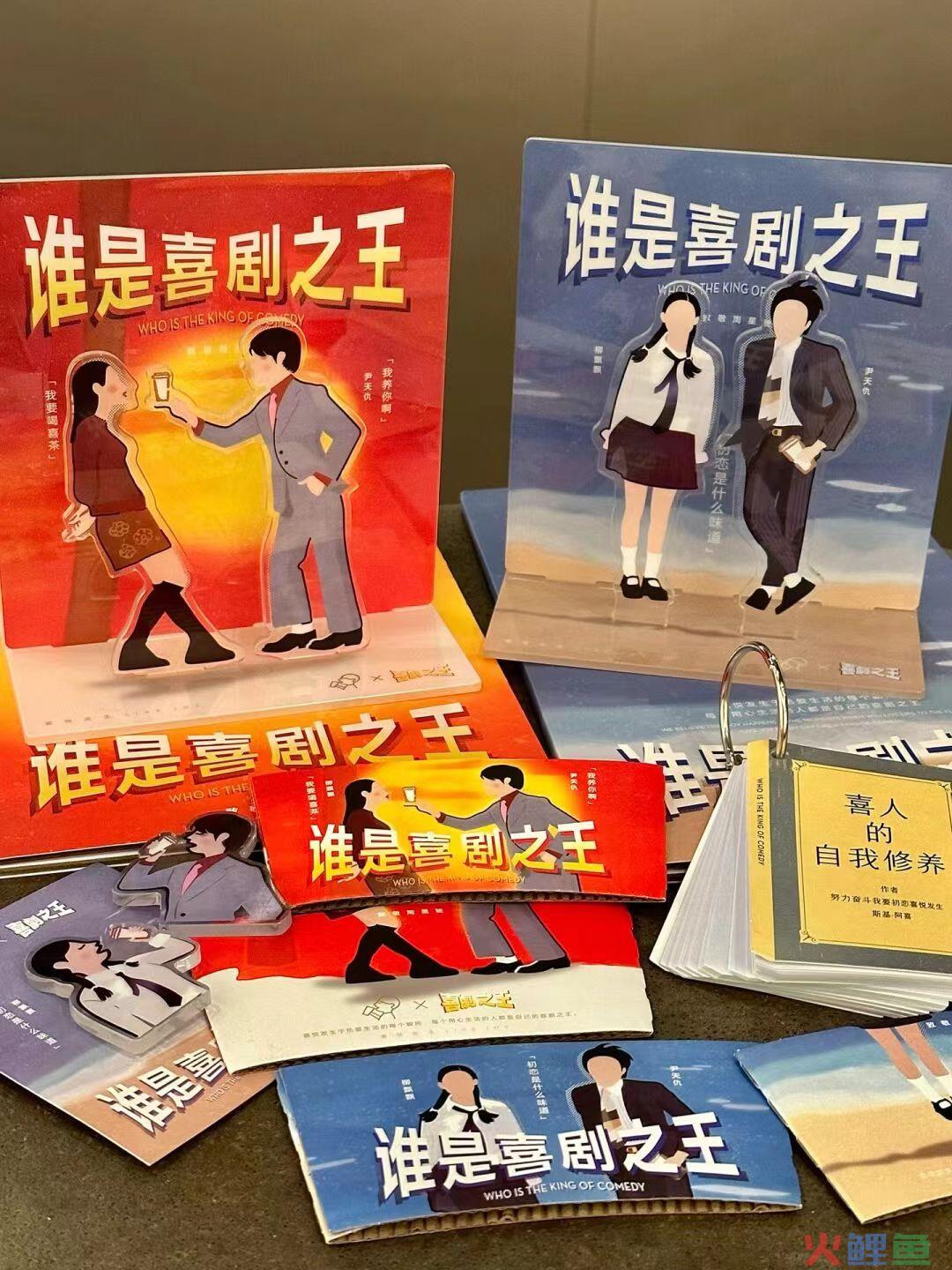 果不其然,之后就流出了双方联名周边:经典桥段的人形立牌,“谁是喜剧之王”杯套,限定人物徽章等。