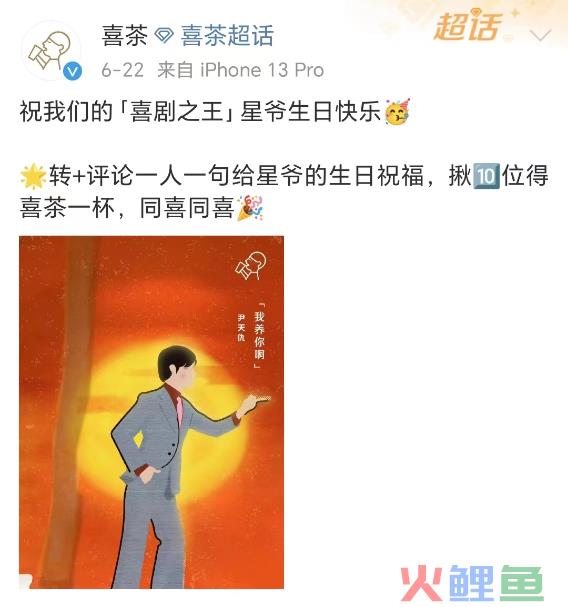 这次联名可以追溯到6月22日,喜茶发布官方微博祝星爷生日快乐,这似乎就暗戳戳的表明了品牌要“搞事”了。