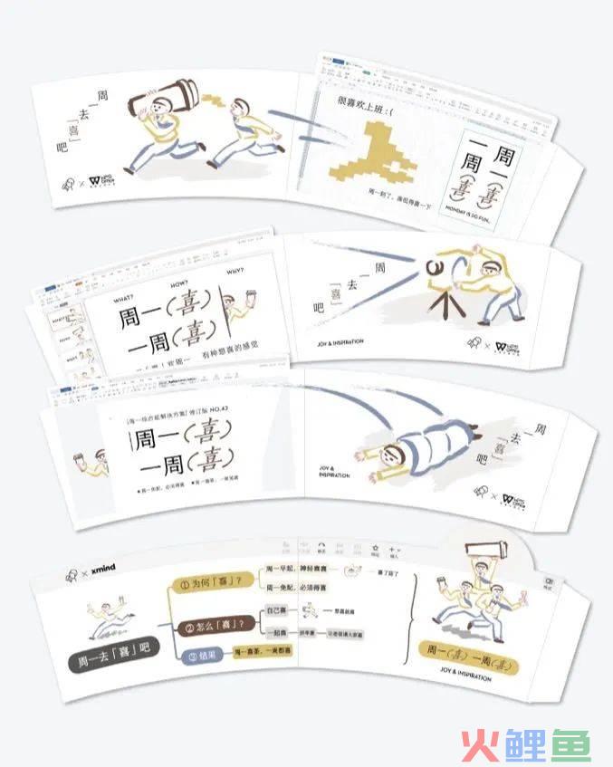 喜茶与WPS和Xmind联名时,将打工人常挂在嘴边的“周一去死(洗)吧”替换成“周一去喜吧”。