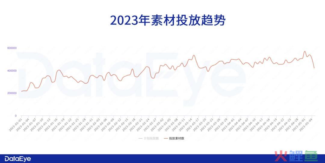 从Dataeye披露的投放趋势来看,今年五一迎来了史上一个投放高峰期,素材投放数量比今年年初时候增加了约39%。