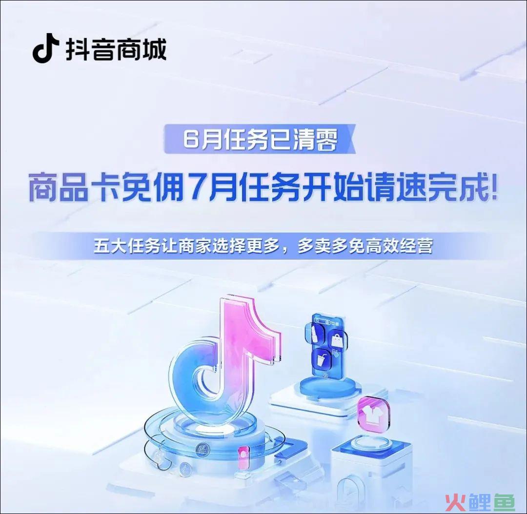 也就是在7月4日,抖音发布了新一轮的商品卡扶持消息,商家只要完成:发布非重复铺货在售商品、采纳标题优化建议、店铺装修质量、商品信息质量良好率、成功入选猜你喜欢商品池,5项任务中的任意2-3项,就能获得7月的免佣资格。